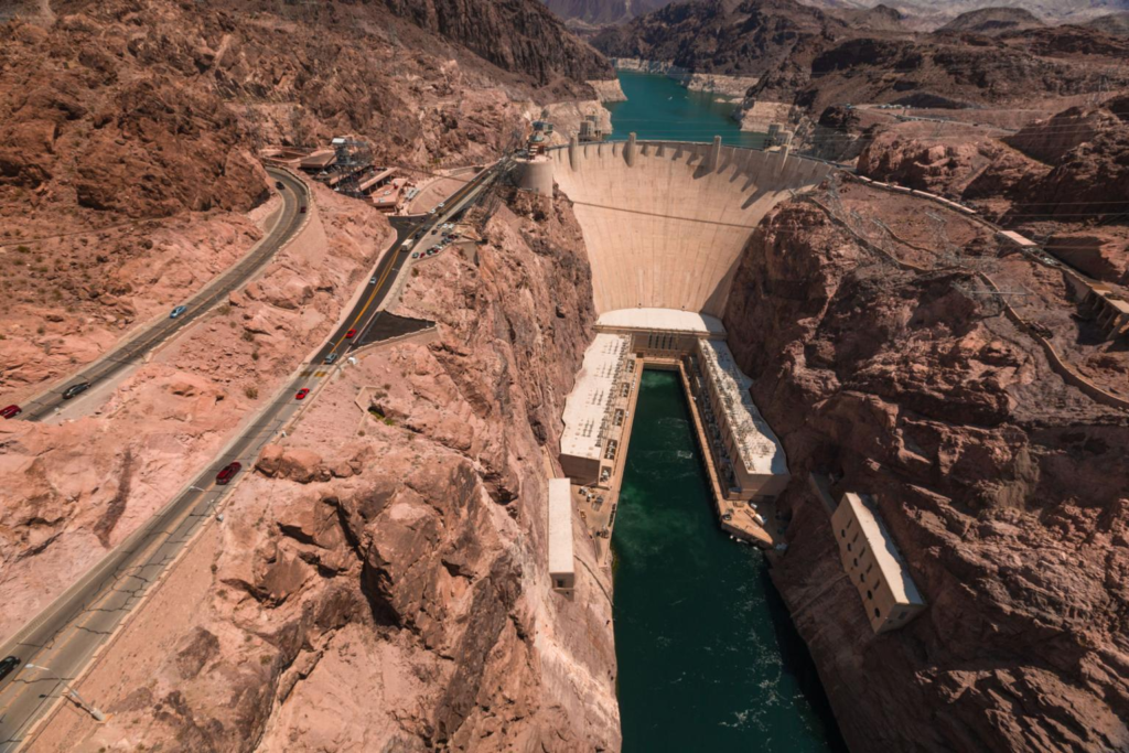 Another landmark is the Hoover Dam, located on the Colorado River between Nevada and Arizona. Completed in 1936, the dam created Lake Mead, the largest reservoir in the United States by capacity. The project provided hydroelectric power, irrigation, and flood control for multiple states.