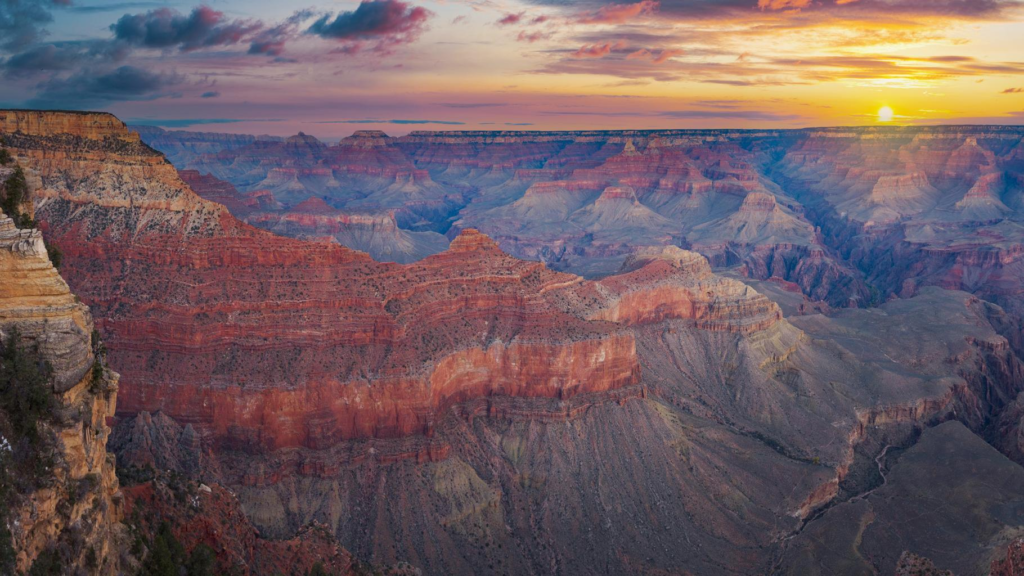 Few natural landmarks illustrate Earth’s geological history as dramatically as the Grand Canyon in Arizona. Carved by the Colorado River over millions of years, the canyon stretches 277 miles long and reaches depths exceeding one mile.